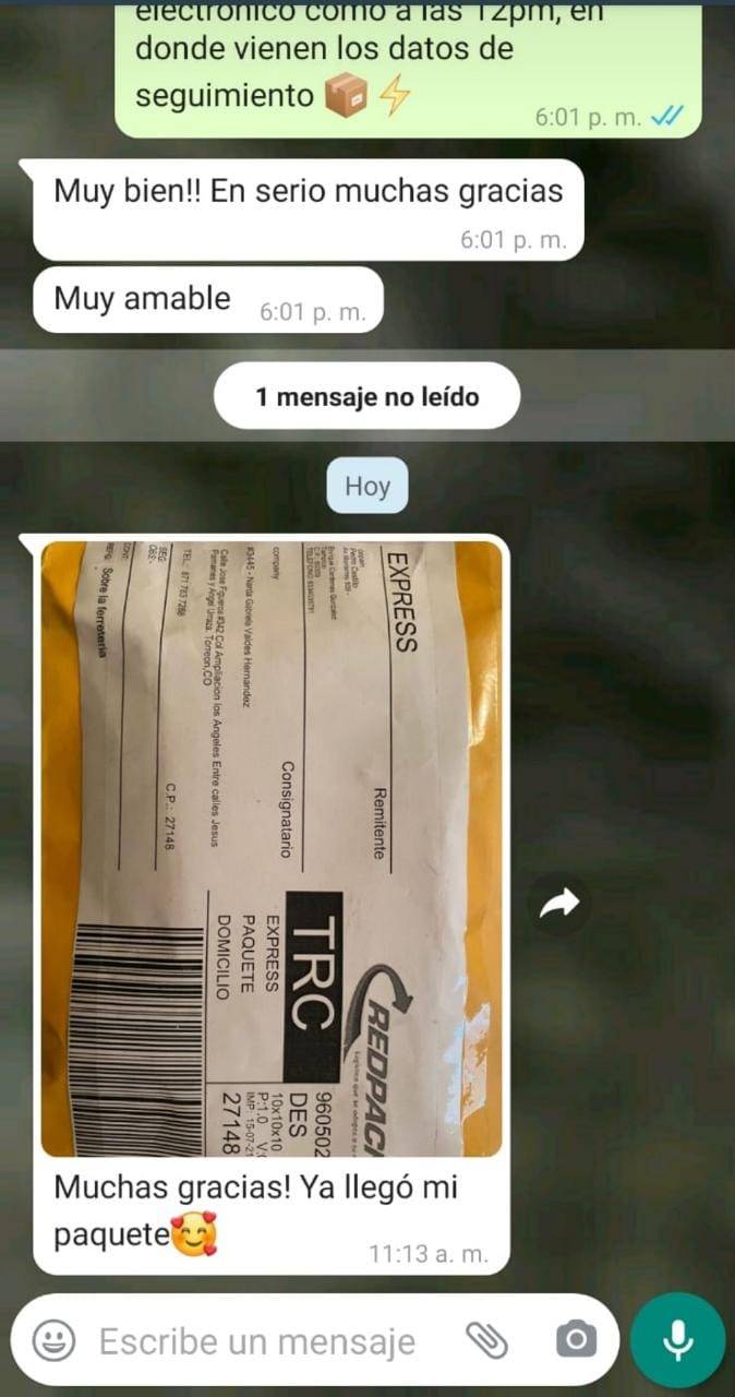 Su pedido es enviado en menos de 24 hrs después de su pago. Contamos con envío exprés gratis, en caso de que su zona cuente con cobertura exprés toma de 1 a 2 días hábiles en llegar.